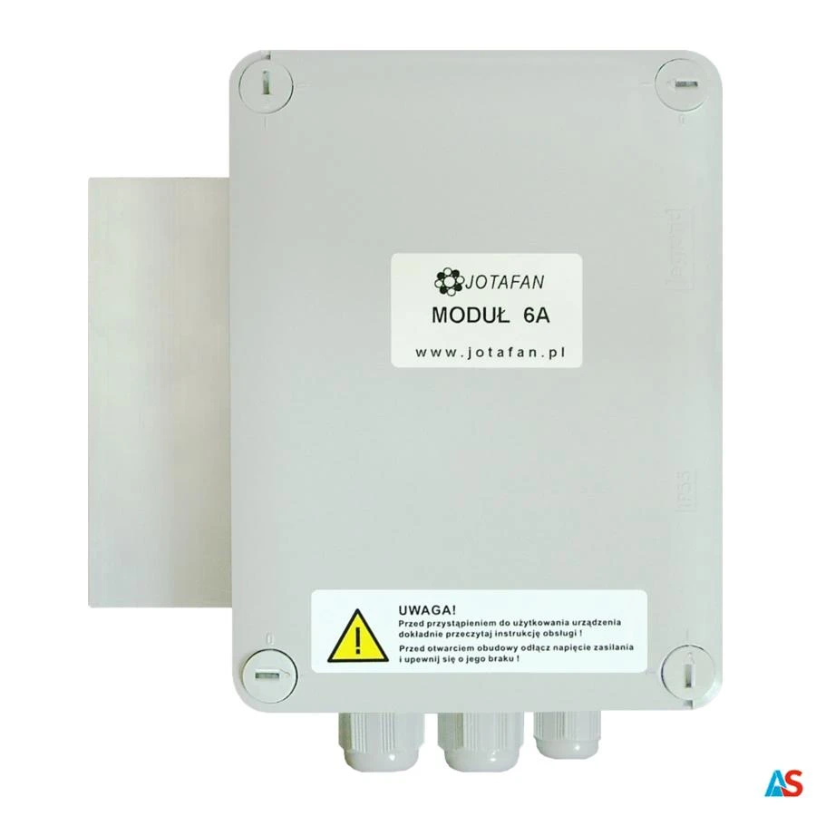 Moduł 6A jest to urządzenie rozszerzenia sekcji płynnej z bezpośrednim zasilaniem odbiorników zasilanych z sieci 230 V, 50Hz (np. wentylatorów) o poborze prądu do 6 A w zakresie od 0 do 100 % mocy. Moduł ten może być stosowany współpracy z regulatorami JOTAFAN wyposażonymi w interfejs RS-485. Dzięki zastosowanej separacji galwanicznej pomiędzy obwodami energoelektronicznymi i wejściowymi modułu możliwa jest współpraca kilku modułów zasilanych z różnych faz napięcia co zapewni równomierne obciążenie sieci zasilającej oraz częściowe funkcjonowanie wentylacji w przypadku zaniku zasilania jednej z faz.